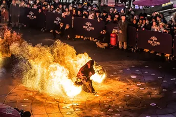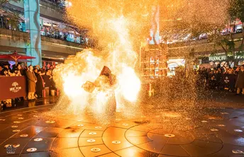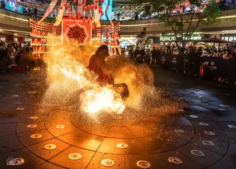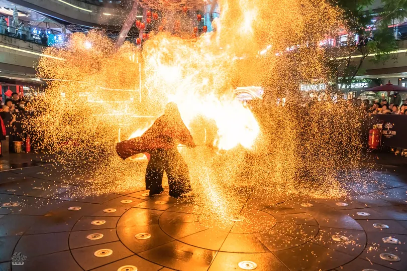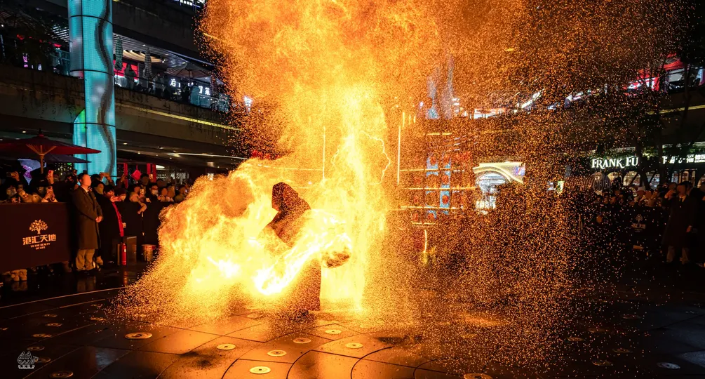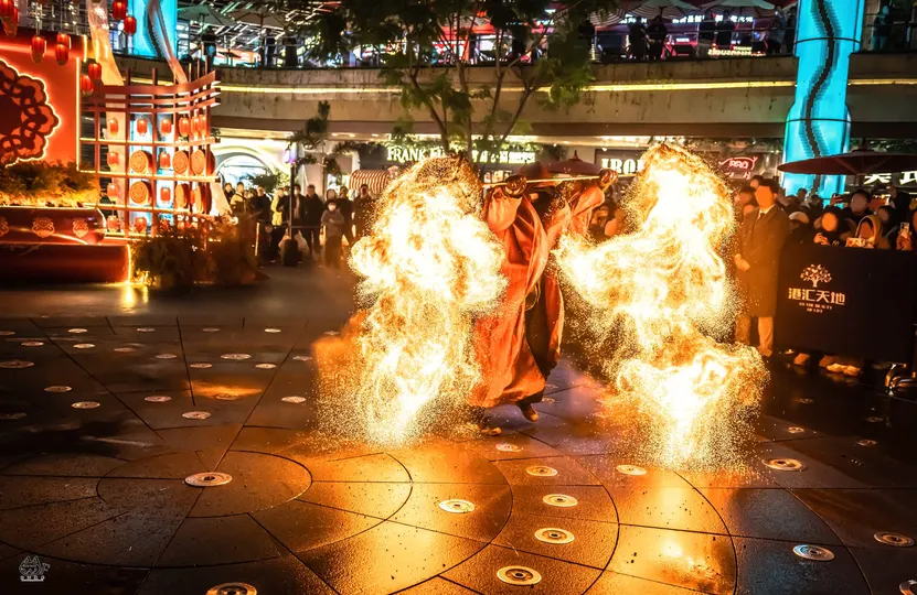 拍摄于2025年1月10日,新年第一拍~ 地点:成都汇港天地 你好ദ്ദി(˵ •̀ ᴗ - ˵ ) ✧ 这里老吴呀~是个在躺平摆烂和卷死所有人之间反复横跳还话痨的小废物~ 今年决定当个卷王啦!(划掉)(我知道新年刚开头立得flag一定会在年底狠狠华丽打脸∠( ᐛ 」∠)_) 呀呼~终于拍到心心念念的火壶表演啦~那天晚下着绵绵细雨,火焰配着湿湿的地面,火与水组成光的降临(有点中二)。 有一说一!火壶表演者真的超酷的,拍着拍着就感觉: 夜晚,下着绵绵细雨,虔诚的信徒围绕着祭台,火焰祭司就站在人群中央,踩着历任祭司走过的脚印,祈求着来年风调雨顺,除恶除灾殃。 哇偶~人间不过三万天的游戏,每天都在认识不同的地球Online的NPC~(✧∇✧) 这里老吴~很高兴认识你~ (*≧▽≦)