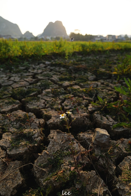 在小乡镇里随意兜兜,发现了一块皲裂的土地,感叹生命力的顽强