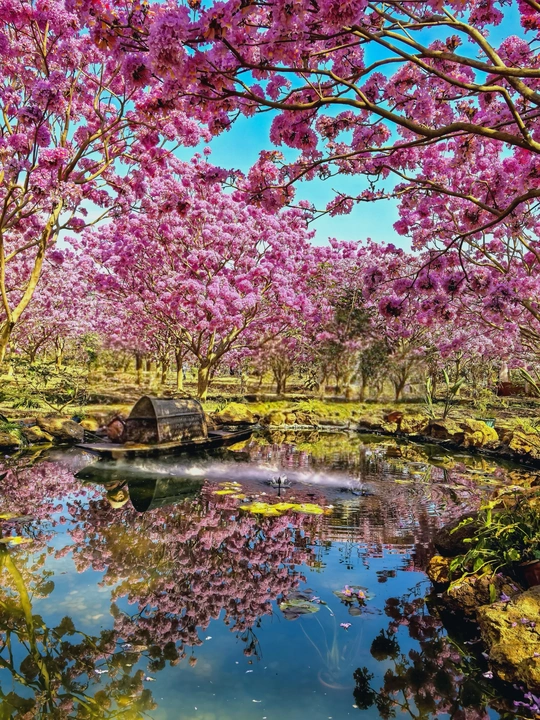 周末去了绿美生态园,满山遍野的紫花风铃木,仿佛走进了花花世界,美轮美奂。