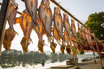 冬日暖阳下,鉴湖里又到了晒年货的季节