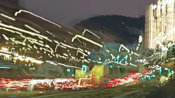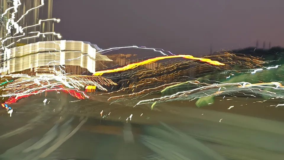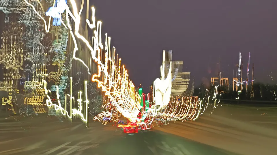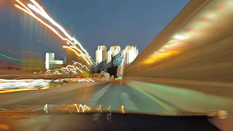 在行驶的汽车上用手机慢门拍下的城市光影的照片,超级美哒