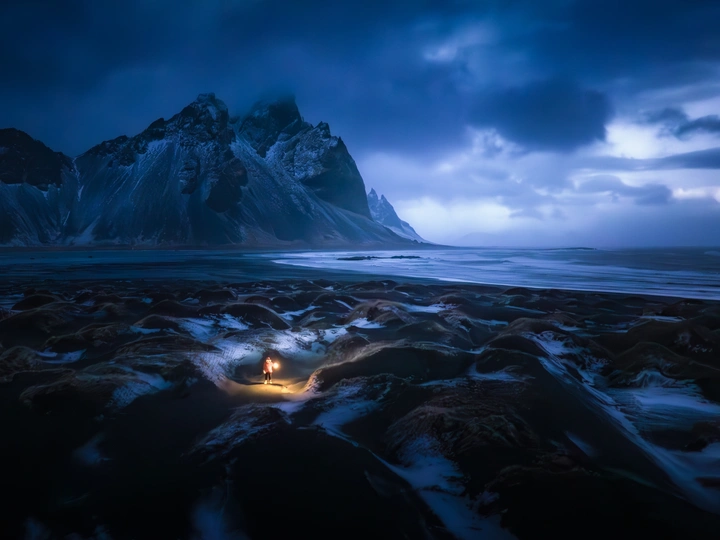 极夜的冰岛,只有无尽的蓝调。