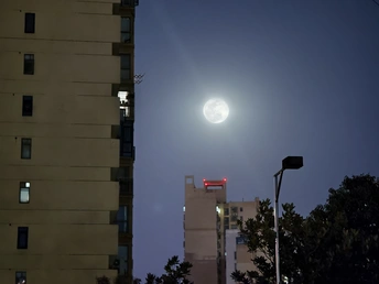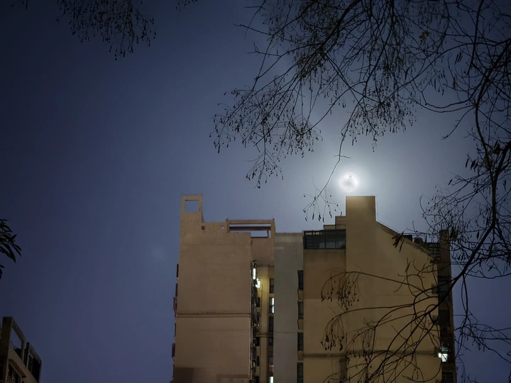 冬季的夜晚,冷风掠过,月光洒满小区,映照出楼房冰冷的轮廓,给人一种凄冷的感觉。