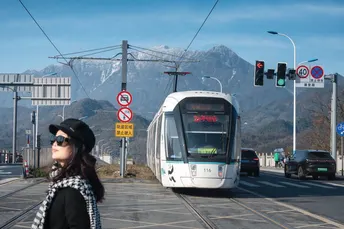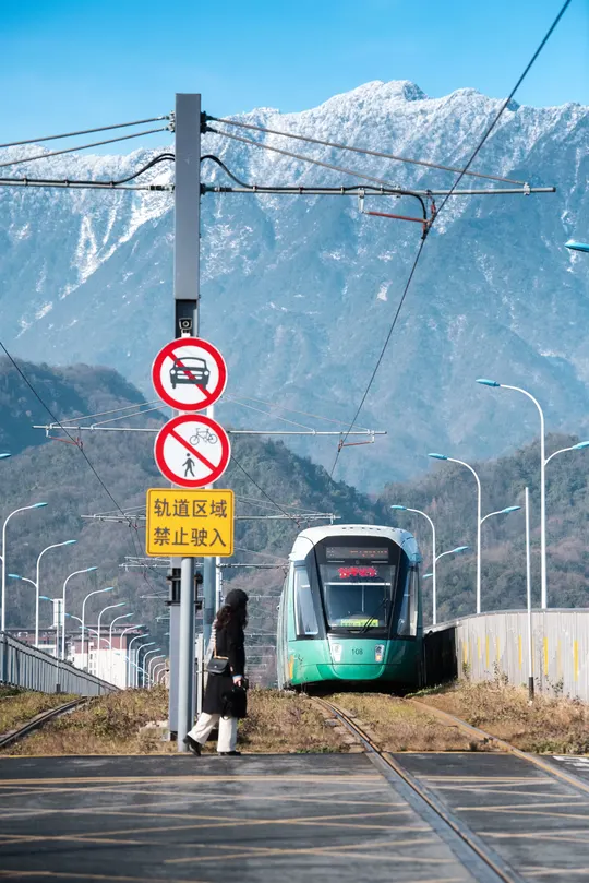 当雪山?️邂逅有轨电车?,这应该就是雪山下的公园城市漫画版了。