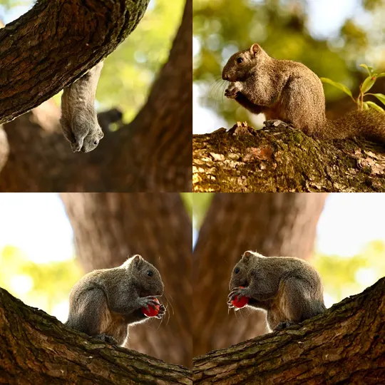大自然的馈赠总是如此美妙!西湖捕捉到了松鼠们的精彩瞬间,忍不住分享给大家。这些小家伙们在树上“各显神通”,有的倒挂着,像是在炫耀自己的平衡绝技;有的则专注地啃着果子,那可爱的小爪子紧紧握着食物,生怕被抢走似的。它们是森林里的小精灵,用灵动的身姿和俏皮的模样,为大自然谱写着一曲欢快的乐章。愿我们都能放慢脚步,去发现身边这些微小却美好的存在,让生活充满惊喜与温暖。