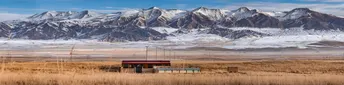 冬天的青海湖,鲜见旅游之人,牧场也重归于牧民,没有了游客的聒噪,一切回归宁静,远山被冰雪覆盖,湖畔牧草枯黄,牧民之家散落在枯黄的草原之上,自然之和谐大抵如此。