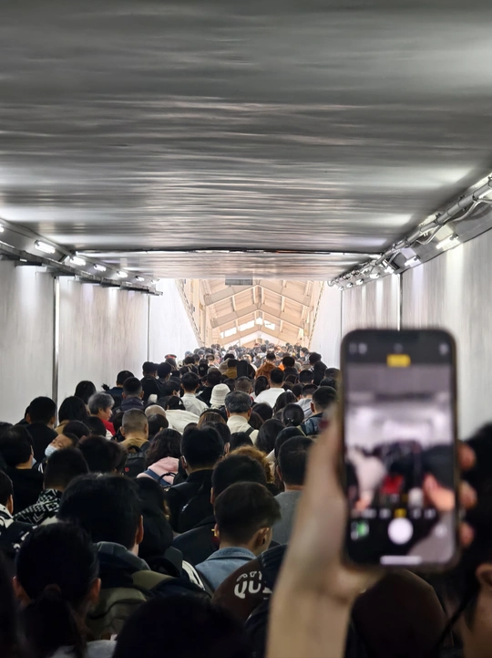 在广州火车东站随春运人流一同乘车,在登车口处看到这一景象
