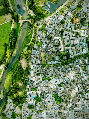 高空俯瞰云南沙溪古镇,青砖黛瓦的白族民居,错落有致,蜿蜒的黑惠江如同一条玉带,环绕着古镇,宛如大自然亲手绘制的田园诗画,让人沉醉而向往。