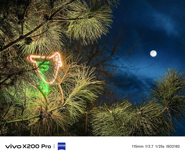 月夜如纱,松枝摇曳。霓虹灯光勾勒出灵动之形,宛如栖息之鸟。明月高悬,万籁俱寂,鸟儿似沉醉于这静谧月夜,安然不惊。