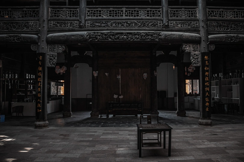 曾经热闹非凡、高朋满座的戏院茶馆,如今却显得格外寂静,空无一人。那曾经回响着悠扬唱腔与欢声笑语的舞台,此刻只有尘埃在微弱的阳光下轻舞。一排排雕花木椅,静静地等待着早已不再归来的观众,它们见证了无数故事的开始与结束,如今却只能默默承载着岁月的痕迹。茶馆的角落里,老旧的茶壶与茶杯孤零零地摆放着,似乎在诉说着往昔的繁华与今日的落寞。门外,偶尔传来的车水马龙声,更映衬出这里的荒凉与孤寂。