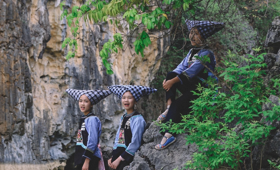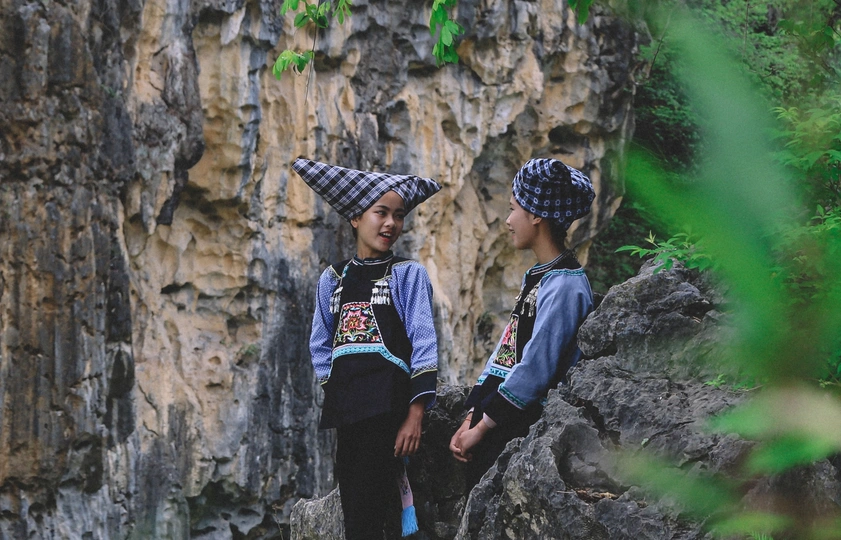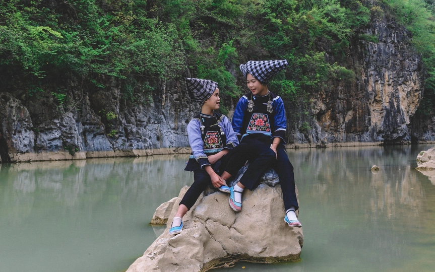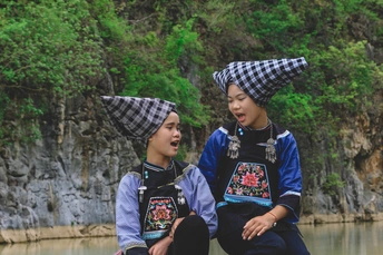 贵州望谟:峡谷中唱山歌的布依族女孩