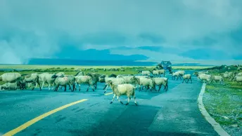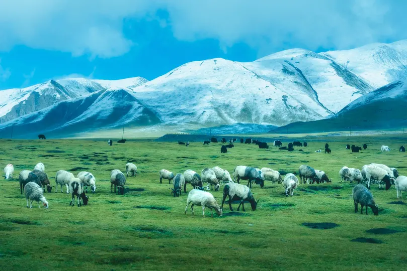 在青藏高原地区,牧民的毡房星星点点散落在草原之上,在阳光的照耀下,白色反射出来的光线使绽放更加耀眼,仿佛草原上的明珠,绽放的周围是自由散漫的羊群,它们有一搭没一搭的刨着草原,不考虑现实,从诗意的角度去看,这可能是人间最美的人与自然结合的场景。