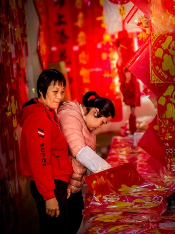 在喜庆的氛围中,人们精心的挑选着春联,就像是挑选一年的希望与梦想。