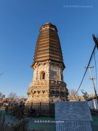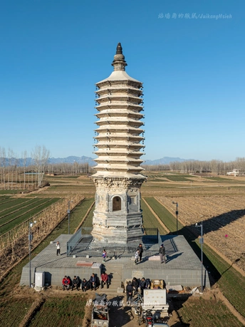 在河北省涞水县的静谧乡野间,四座千年古塔如同时光的守望者,静静地伫立,诉说着它们的传奇故事。从辽金到唐宋,它们跨越了千年时光,将历史与艺术的光辉铭刻在砖石之间。 皇甫寺塔,是金代的文化瑰宝。它高耸的十三层密檐,精美的塔刹,承载着金世宗大定年间的风华。尽管毗卢寺早已消失,这座舍利塔依然傲然挺立,如同历史的信使,将古代工匠的智慧传递至今。 登上西岗山,西岗塔雄踞山巅,犹如一位沉稳的历史见证者。这座辽金时期的十三层砖塔以密檐与楼阁相结合的独特造型闻名,八柱倚塔,塔身如诗。登塔俯瞰,涞水的山川尽收眼底,令人心旷神怡。 龙严寺塔,昔日的“镇江塔”,是唐代的智慧结晶。它守护在清水河边,棱台式塔身与双层仰莲塔刹交相辉映,彰显着唐代建筑的典雅与细腻。传说它曾抵御洪水,守护一方土地,如今它的身影依旧映衬着清水河的静美。 而庆化寺花塔,则像一朵“砖石花”,安静地开在龙宫山的山崖上。八层佛龛环绕塔身,层层递减,精巧绝伦。虽寺院已毁,但塔身的雕刻依然鲜活,仿佛那些佛龛中蕴藏着永恒的禅意。 走进涞水,这四座塔如同时间的琴弦,拨动着每一位过客的心。千年流转,它们在岁月里静默,却依然诉说着古老的文明与建筑的辉煌。