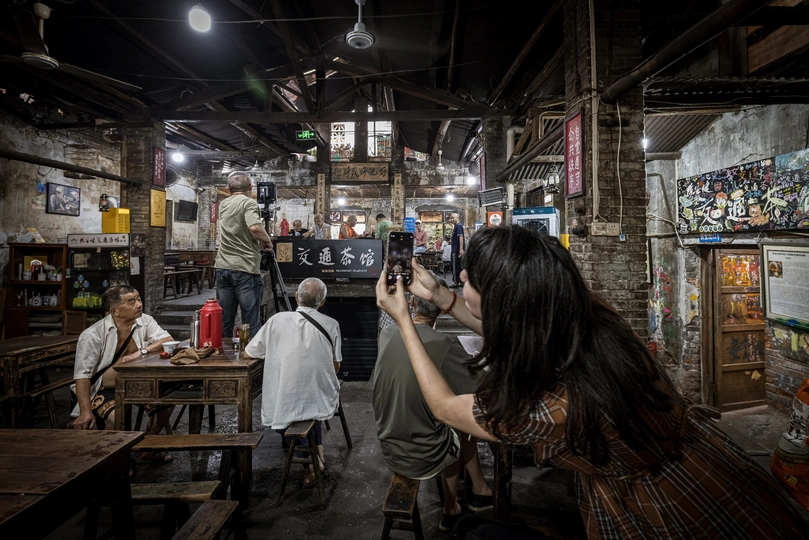 重庆市九龙坡区黄桷坪有家历史悠久的老茶馆,“交通茶馆”,这里聚集了许多当地的老茶客,是一道非常厚重的历史风景线,老茶客们都是一早来到茶馆,泡好茶聚在一起谈天说地,上到国家大事,下到街头巷尾的各种杂谈,十分起劲。由于各种媒体的报道,各种影像的传播,这里也是一处网红打卡点,全国各地的游客都来此打卡,记录这充满烟火气的老茶馆。