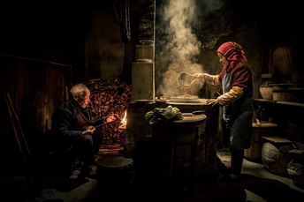 江西婺源,一处村落的农家厨房,充满浓浓的烟火气。