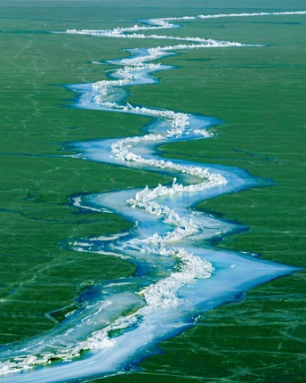 冬日的冰面,是一幅别样画卷。高高鼓起的冰排,似大地隆起的脊梁,弯弯曲曲地延展。它们错落分布,有的紧密相依,有的独自横亘。在清冷日光下,冰排闪烁着幽冷光泽,宛如岁月留下的神秘纹路,静静诉说着冬日的故事。