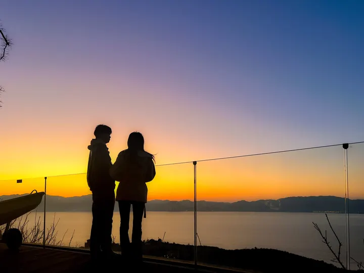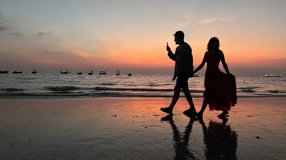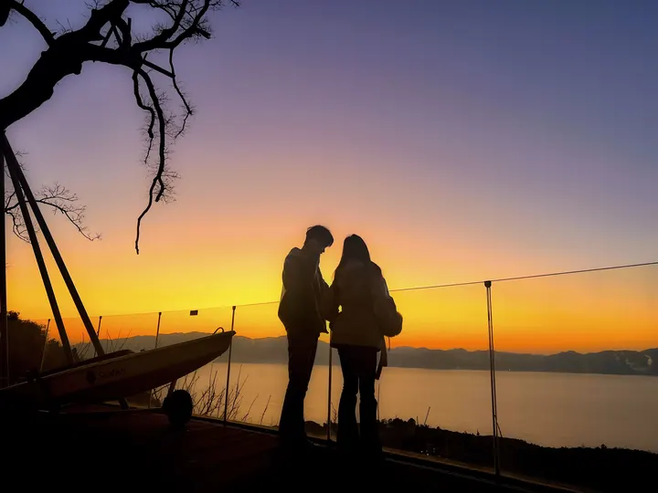 夕阳下的一对情侣 一幅和谐纯美的画面