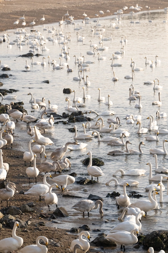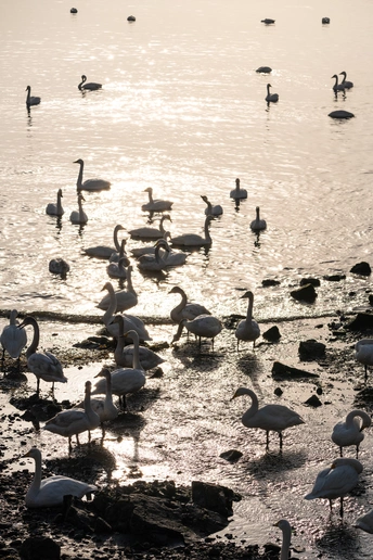 去年年初在新疆开着车绕着赛里木湖大半天才找到的天鹅群只有零星那么几只 在威海荣成这片偏僻到小众的天鹅湖,愣是给弄的像养殖场一样壮观(天鹅多到非常的吵) 这里的铁锅炖大鹅不能是天鹅吧[让我看看]