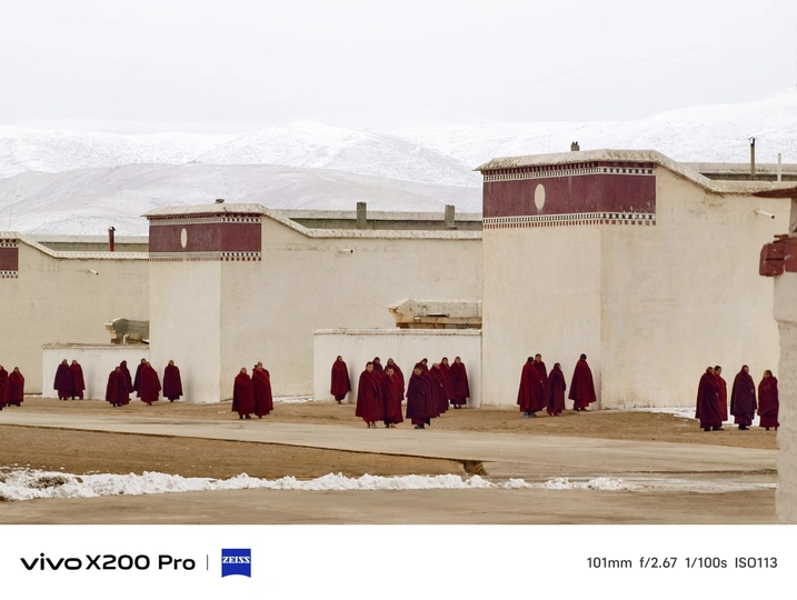 风雪过后,各莫寺的僧侣们冒着寒风前行