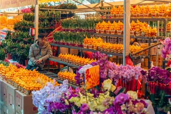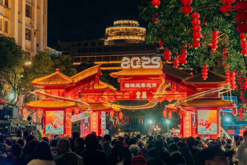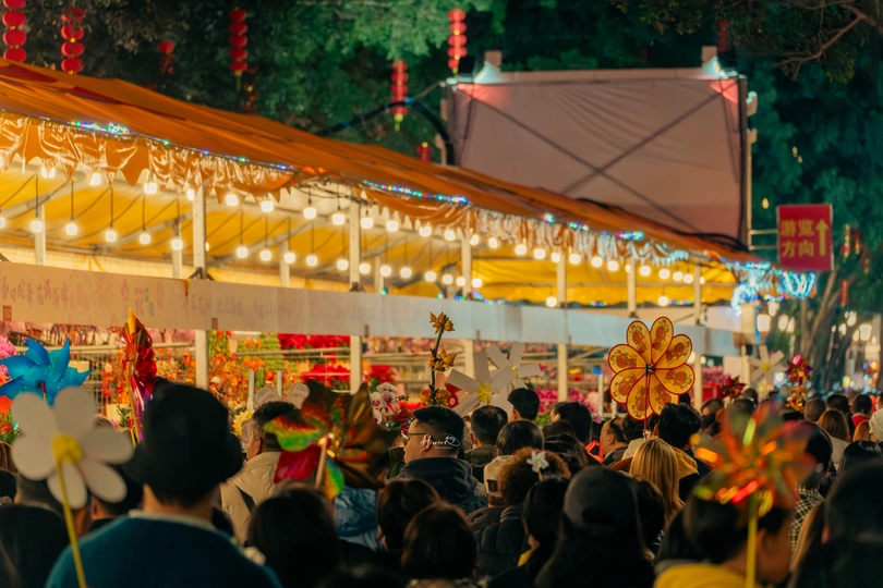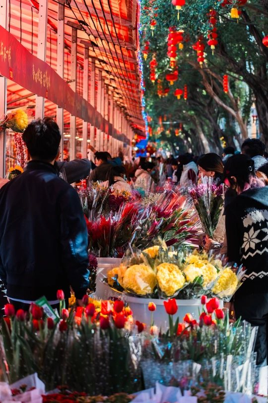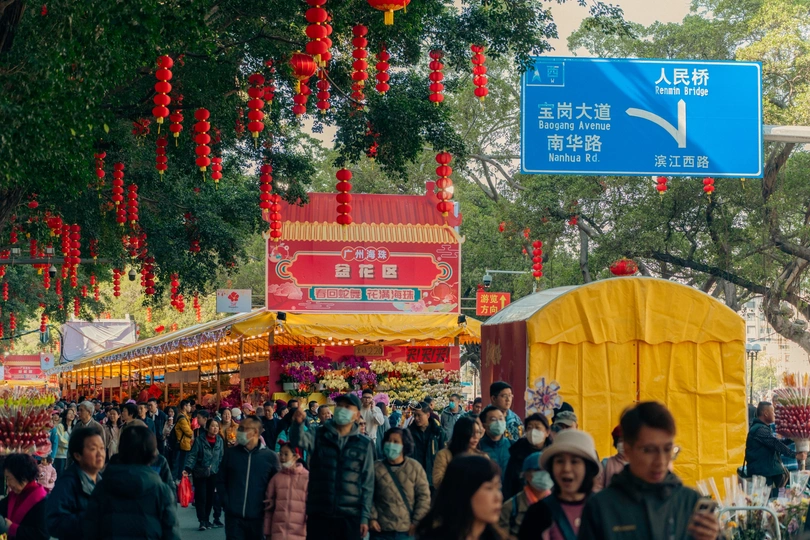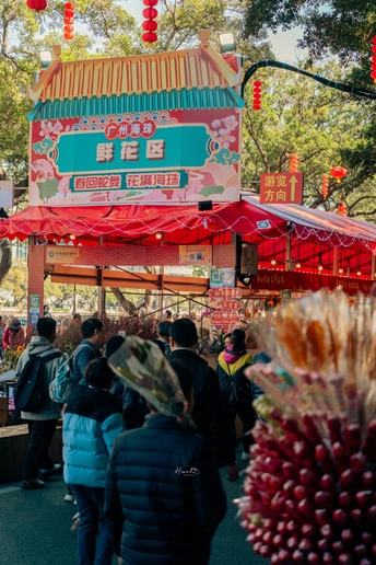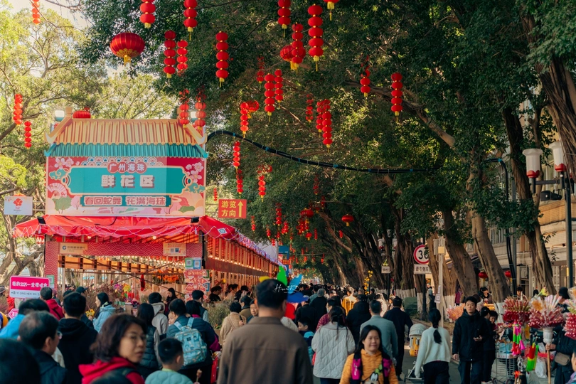 人头涌动中的满满年味 从1月26日起,2025年海珠迎春花市正式开市。 据了解,2025年海珠迎春花市以“春回蛇舞,花满海珠”为主题,设在滨江西路(人民桥以东至解放桥以西)、宝岗大道(滨江西路口至南华西路口),举办时间为3天(1月26日上午八点半至29日凌晨两点),规模长约1400米,设置档位数量320个,分别设有鲜花档、盆花档、工艺品档和年宵品档。