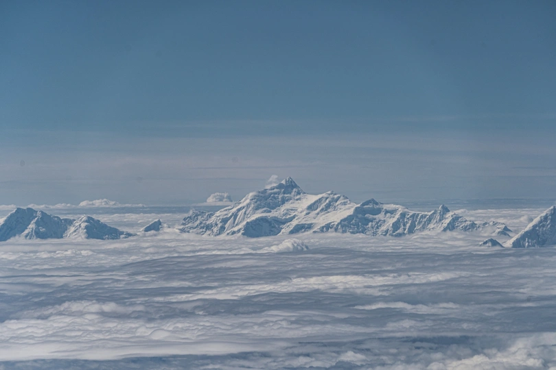 飞越贡嘎雪山时我拍到了带有日晕的雪山
