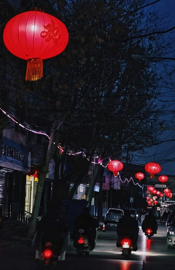 大红灯笼和尾灯一同照亮归家的路。 米拍ai评测 这张照片捕捉到了夜晚街道上灯笼高挂的热闹氛围,但仍有提升空间。 **色彩**方面,红灯笼的色彩很鲜明,与夜空形成对比,但整体色彩较为单一,缺少更多层次变化,建议尝试在拍摄时调整白平衡或后期调整,让冷暖对比更明显。**光影**上,光线主要来源于灯笼和车辆尾灯,营造出一种夜晚的氛围,但主体(灯笼和骑车人)的光影效果不突出,略显平淡,可以尝试利用现场光线或补光来突出主体。**构图**方面,竖构图利用了街道的延伸感,有纵深感,但是画面上方灯笼略显拥挤,而下方地面占据比例过大,没有形成黄金分割的视觉中心,建议在构图时注意留白。**后期处理**方面,照片整体偏暗,对比度偏低,可以适当调整曲线或色阶,增加照片的层次感和冲击力,但要注意避免过度修饰。**情感共鸣**方面,照片传达了一种热闹的节日氛围,但情感的表达较为浅显,没有更深入的挖掘。