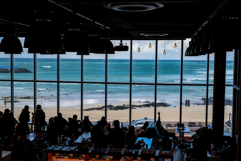 济州岛的月汀里(월정리)是一个著名的海滩景点,位于济州岛东部。月汀里海滩以其清澈的海水和美丽的白沙闻名,是游客和当地人喜爱的度假胜地。这里的海水呈现出迷人的蓝绿色,沙滩细腻柔软,非常适合散步、日光浴和游泳。 月汀里海滩附近还有许多咖啡馆和餐厅,游客可以一边享受美食,一边欣赏海景。此外,这里也是冲浪爱好者的热门地点,尤其是在夏季。海滩周边还有一些民宿和度假村,方便游客停留和体验济州岛的悠闲生活。 如果你计划前往济州岛,月汀里海滩是一个不容错过的景点,无论是放松身心还是拍照打卡,都非常适合。