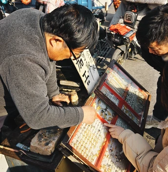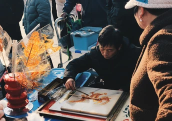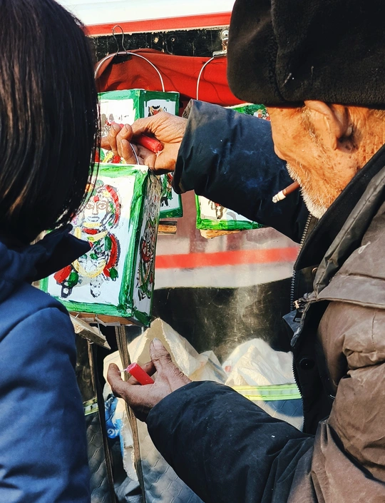 集市上看到了“打戒指”、“画糖人”、“纸灯笼”的手艺人。尤其是玩灯笼的老爷爷,自己画画,自己组装,不同的画还能给讲个主题。