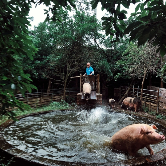 2024年6月23日拍摄于重庆市九龙坡区白市驿毛毛虫生态农场。当天刚好星期天,带着5岁的女儿去农场游玩,刚好看到几头粉色小猪在依次跳水嬉戏,溅起的水花也让现场气氛达到高潮。我想起了电影《阿甘正传》中,阿甘的一句台词“生活就像一盒巧克力,你永远不知道……”
