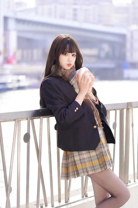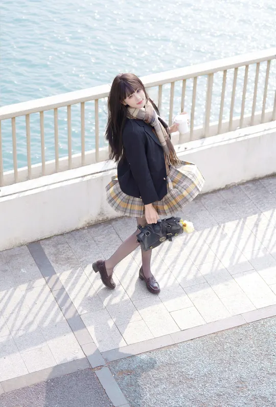 她轻盈的步伐,在江边的小道上跳跃着欢快的节奏,仿佛与波光粼粼的水面共鸣。微风拂过,吹动了她的裙摆和发丝,也带来了江面上淡淡的凉意和清新的气息。