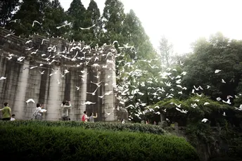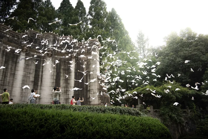 南京音乐台的最后一个音符落下,群鸽飞舞,纯白飞扬,宛如乐曲的回音。