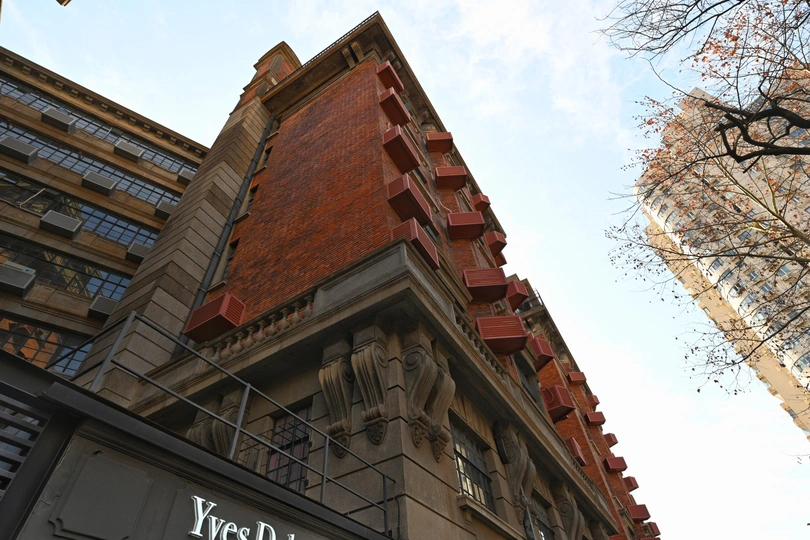 武康大楼(WuKang Building),曾用名诺曼底公寓,位于上海市徐汇区淮海中路1850号,武康路、兴国路、淮海路、天平路、余庆路口五街交汇处,是上海第一座外廊式公寓大楼。武康大楼始建于民国十三年(1924年),外形犹如一艘巨型航船。