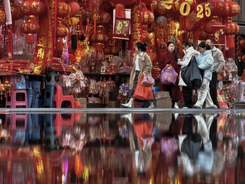 红灯笼高高挂起,如同点点繁星,照亮了街道,也映红了每个人的脸庞。