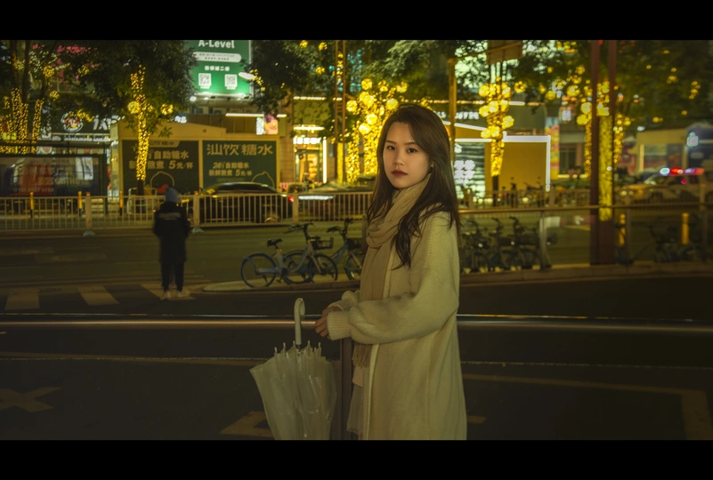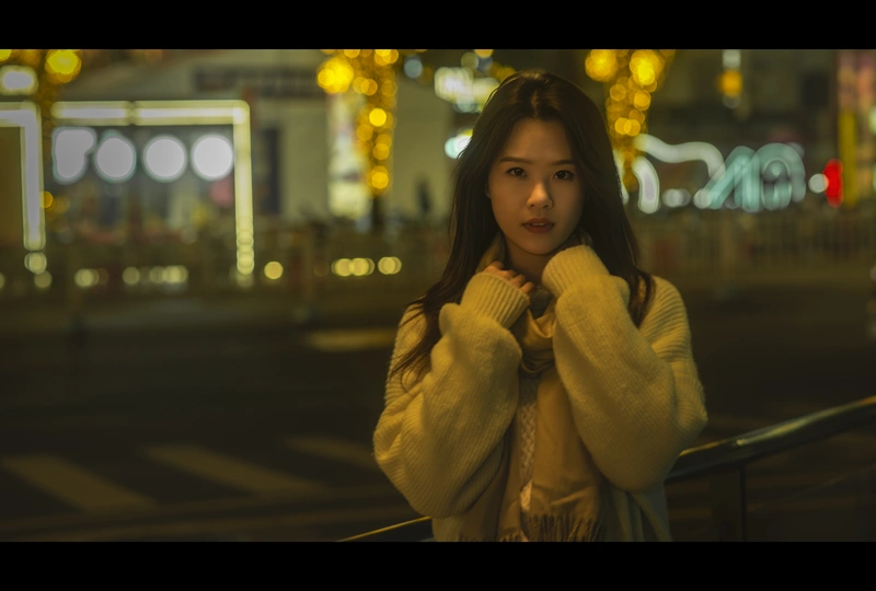 霓虹闪烁,夜色迷离, 白色毛衣的她, 仿佛从老电影中走来。 📷 镜头定格瞬间, 光影交错, 勾勒出她精致的侧脸, 和眼底那一抹淡淡的温柔。 📍 [拍摄地点], 熟悉的街角, 因为她的出现, 而变得格外浪漫。