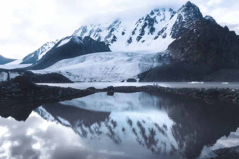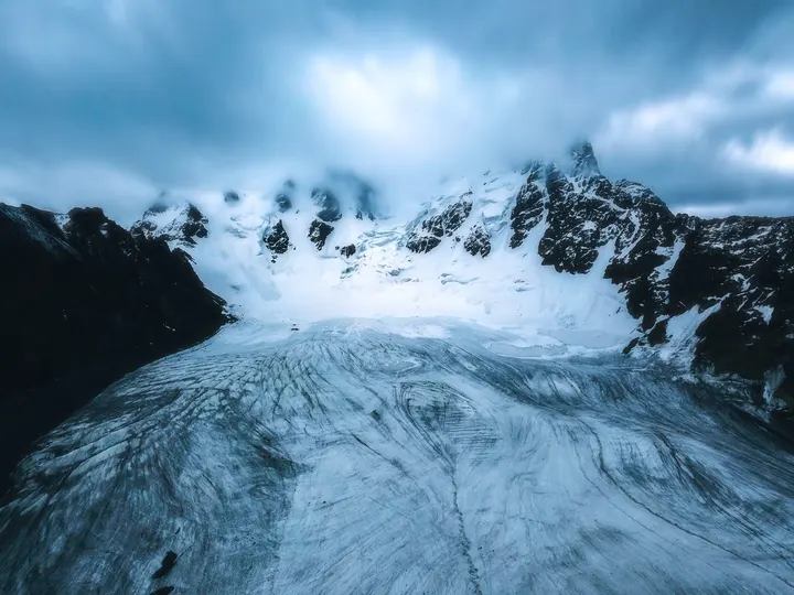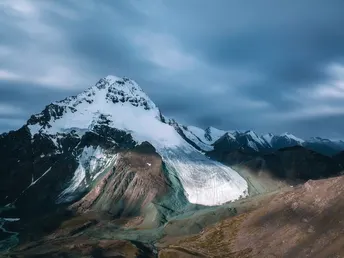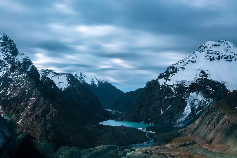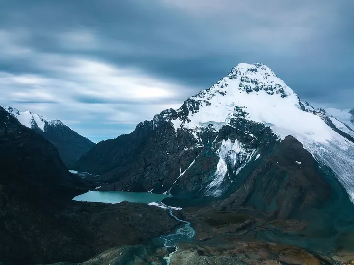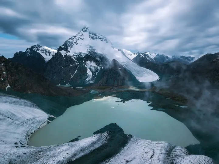 在乌鲁木齐市区,我们可以远眺到一座极高的山峰,积雪常年不化,那就是东天山的最高峰 —— 博格达峰。花两天时间爬到登山大本营后,可以一览其全貌,一侧是博格达峰,另一侧是小珠峰,两座山峰中间夹着一个巨大的峡谷,峡谷中由冰川融水形成一个湖泊,在博格达峰脚下,还有一个外形酷似爱心的冰湖,其与冰川直接相连。