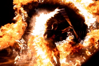 火棍表演很震撼人心,看起来舞者仿佛从烈火重生一般