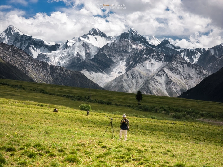 阳光从云隙透下,照亮了雪山与我。 新疆,夏塔 DJI AIR3