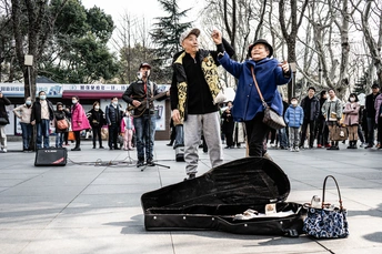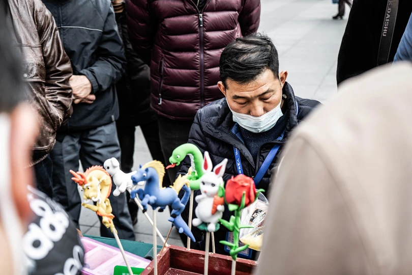 城市的街头都是生活,有手工艺人专注制作糖人、现场雕刻葫芦,展现传统技艺魅力,“小丑”精心摆弄着色彩缤纷的气球造型,为孩子们带来欢乐;街头艺人弹唱,吸引老人随之起舞,洋溢着生活的活力;行人带着宠物,家长陪伴着孩子。街头巷尾,温暖如春。
