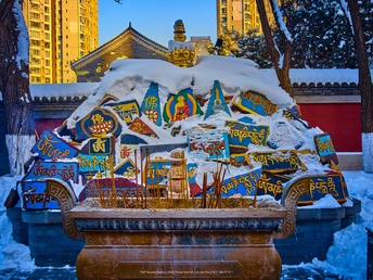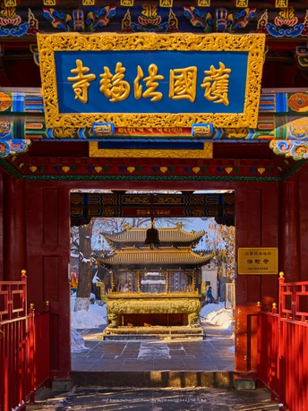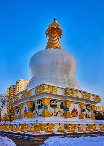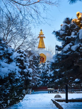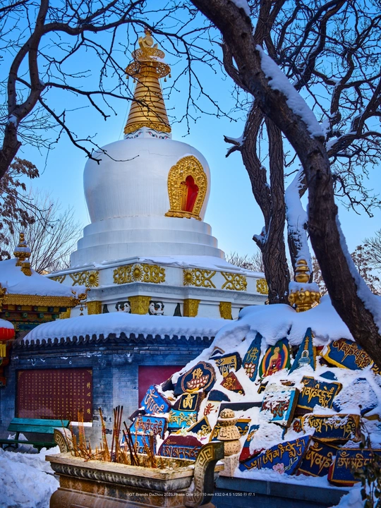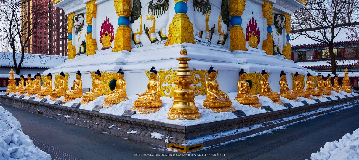 这里是沈阳 | 北塔护国寺 夕阳映射,坛城庄严,大雪过后的北塔护国寺很美。 飞思中画幅系统拍摄