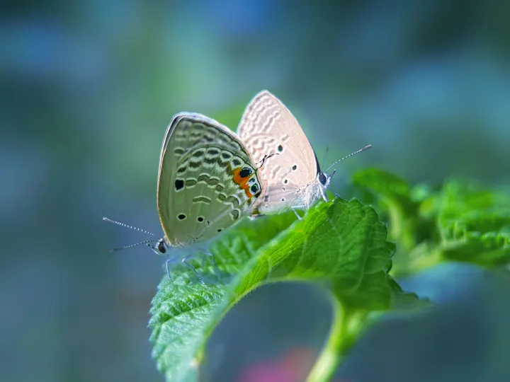 我漫步公园,,目光被花坛里的绿植所吸引,走近一看,竟发现了一对小灰蝶正在交尾。 它们的翅膀在阳光下闪烁着淡淡的灰色光泽,仿佛是大自然精心绘制的精灵。小灰蝶的身体轻盈而小巧,翅膀上精致的纹理宛如细腻的雕琢。它们紧紧相依,翅膀微微颤动,仿佛在诉说着彼此的深情与承诺。周围的绿植为它们搭建了一个天然的舞台,叶片在微风中轻轻摇曳,似乎也在为这对小生命的结合而欢呼。 看着它们,我不禁感叹大自然的神奇与美妙,每一个生命都在以自己的方式演绎着属于它们的故事,而这片公园,正是它们共同的家园,见证了无数生命的诞生与成长。