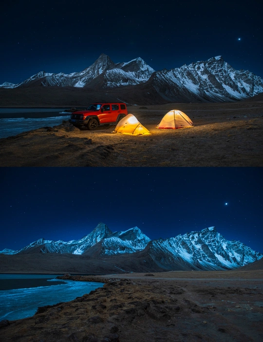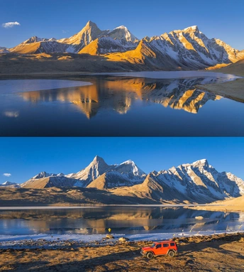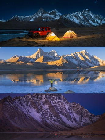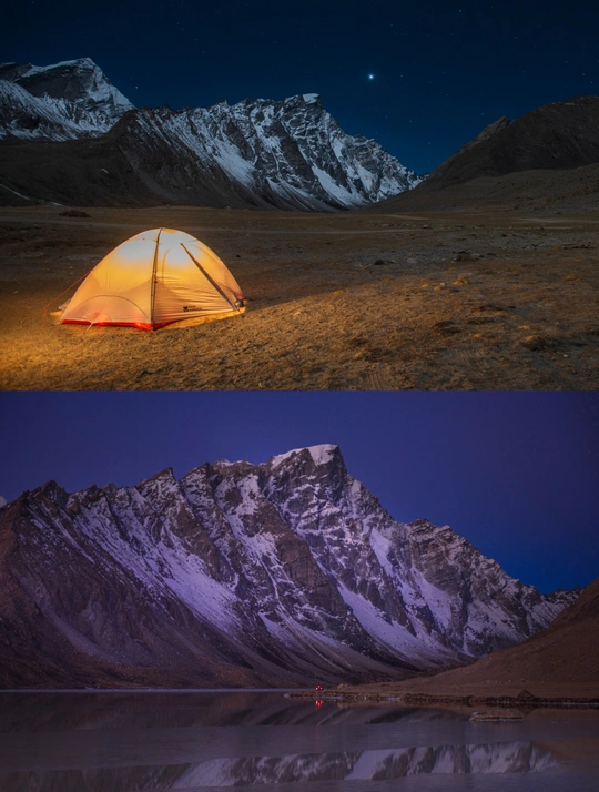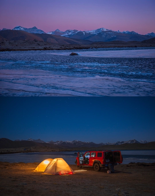与世界失联的15个小时里,我们在零下13度,海拔4900多的定结宗错湖边露营,看到了阿玛直米的“月照冷山”,忍受了一夜的寒风刺骨,终于等到了早上9点的“日照金山”!此刻,我对雪山的爱意永恒!