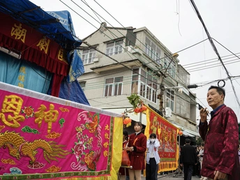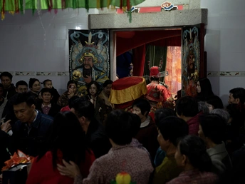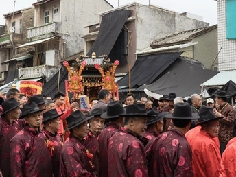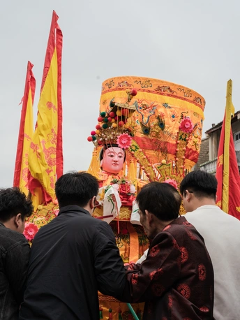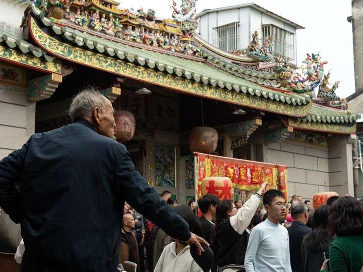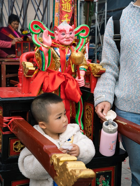 饶平汫洲,一个海产富饶的海滨小镇,常年浸泡在生蚝和泥土混合的独特味道里,正月初四神落天后,如同潮汕地区其他乡里,这里的过年民俗刚拉开序幕。 从正月初五林厝大祠堂营妈祖,到十八崇政王爷出巡,镇上的劳热日复一日,年复一年。妈祖是潮汕人民的重要信仰,每年初五又是春节法定假期内外乡务工回家人未返工的日子,这天便是汫洲镇营老爷的重头戏。游神队伍出巡、各大祠堂庙宇接神、请戏台答谢神恩、掷圣杯投标求好运,种种民俗构成了这里的人们对新年的美好祝愿,也描绘出一幅热闹的新年画卷。 📷 SONY A7C 📍正月初五,饶平县汫洲镇