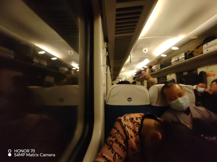 归乡的旅途,略带疲惫,人们早早进入梦乡
