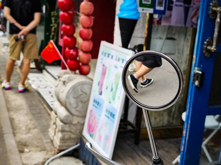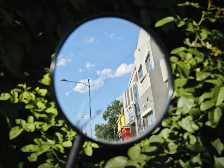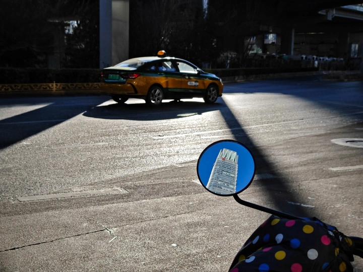 摄影怎么拍?其实就是不按正常人的视角去看世界,明明可以直视前方,可我就非得看看镜子里的世界。 每次出去扫街我都会时不时关注一下车后视镜里的世界,看看有什么好玩的、好看的然后拍下来。 如果你在路上看到有个人盯着后视镜看,八成是个扫街的。