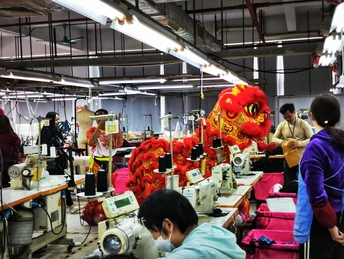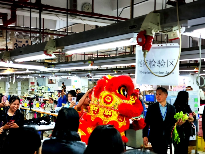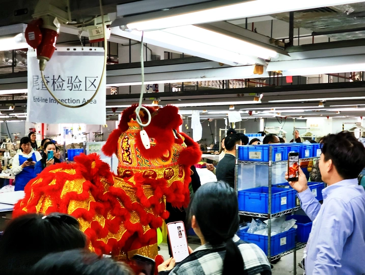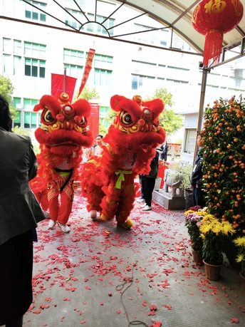 工厂邀请醒狮队贺业。祈盼生意兴隆。