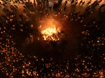 2025年春节的揭阳万人火把节,是一场光与热的狂欢。春节本就是团圆祈福之时,火把节的火把似希望之火。人群中老少皆举着火把,围篝火而舞,歌声笑声交织。孩子们嬉戏,情侣互诉情长,老人含笑而坐。这不仅是节日的庆典,更饱含人们对美好生活向往,传承着文化底蕴。