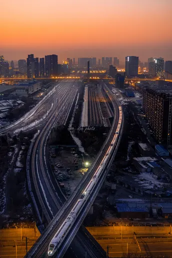 严冬三九,长珲城际的动车依然奔跑不停。 直到暮色,一列重联CRH380B在黄昏中离开长春站。