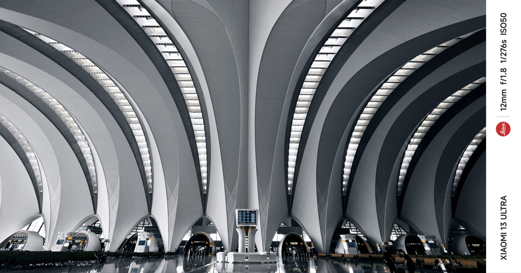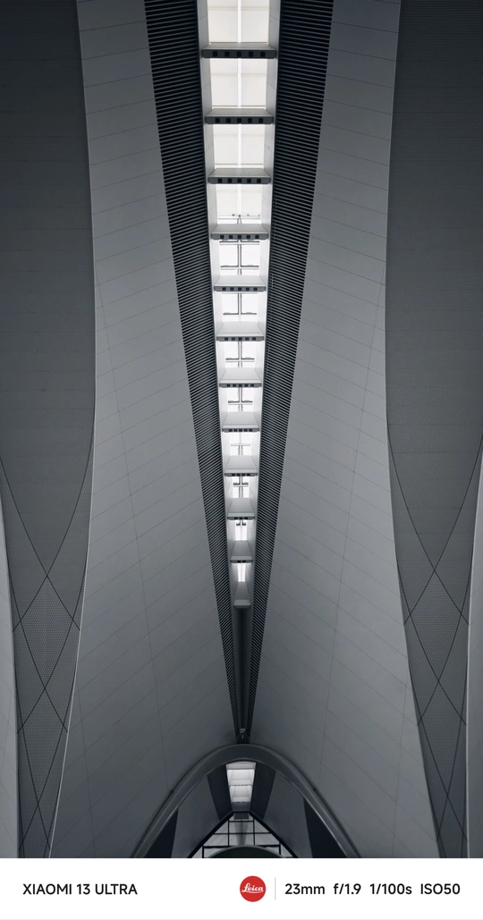 ?在众多的公共建筑中,机场和车站似乎是最能将规整的几何图形、宽阔的挑高、大面积的自然光与实用功能相结合的。 ✈️只需稍稍抬头,便能将视角剥离熙攘的人群,欣赏建筑师的美学设计。 ?说人话就是容易出片!这类场景光影感强,且对画质、色彩要求不高,辛苦的旅途中用便捷的手机最适合捕捉到这些几何线条。
