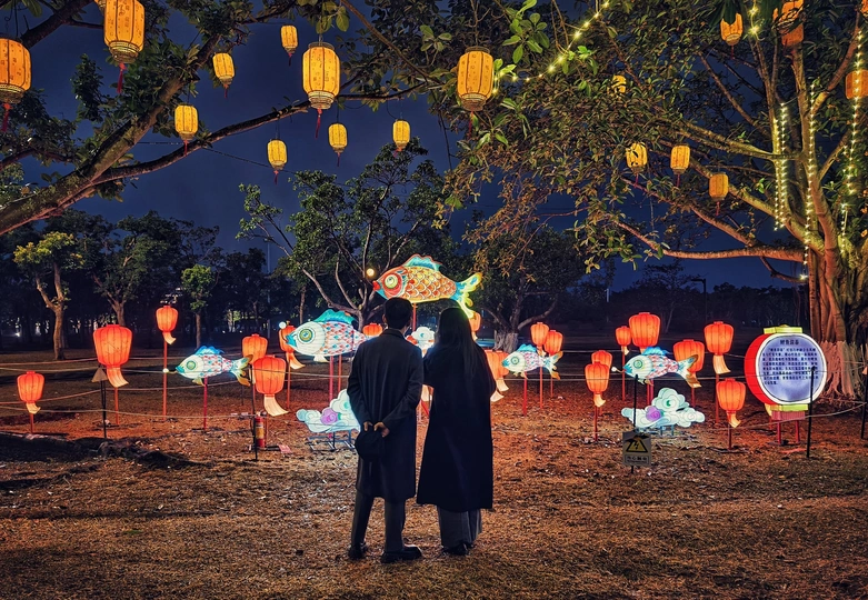 元宵节将至,神舟花灯亮起,遇到一对在观赏鱼灯的情侣,在光的氛围下,就像一群鱼儿从眼前游过!